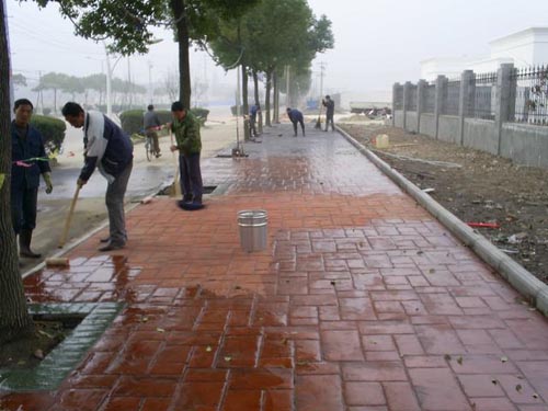 彩色混凝土壓膜地坪是初級工藝,國內(nèi)外比較先進(jìn)的彩色混凝土施工工藝是通體彩色混凝土。通體彩色混凝土是在混凝土攪拌中添加特定的顏料,然后用專用的工具、抹具或手工技術(shù)制成,它能夠使地面或墻面永久性地呈現(xiàn)豐富的色彩,能夠逼真地模擬天然石材的材質(zhì)和紋理,而且愈久彌新。