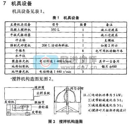 基層刷水灰比0.4~0.5的素水泥漿一遍,馬上施工C35混凝土,混凝土采用普通42.5 MPa水泥,中粗砂,粒徑1 cm-2 cm石子拌和,坍落度3 cm左右,機械攪拌,人力推車或機動翻斗車運輸,2 m刮尺刮平,平板振動器振搗,水平儀控制標高(也可提前貼標控制標高),然后用圓盤提漿機提漿,磨平。