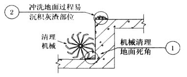 ②基層面沖洗過(guò)程,應(yīng)認(rèn)真清理沉積在地面高低差部位上口的渣子。