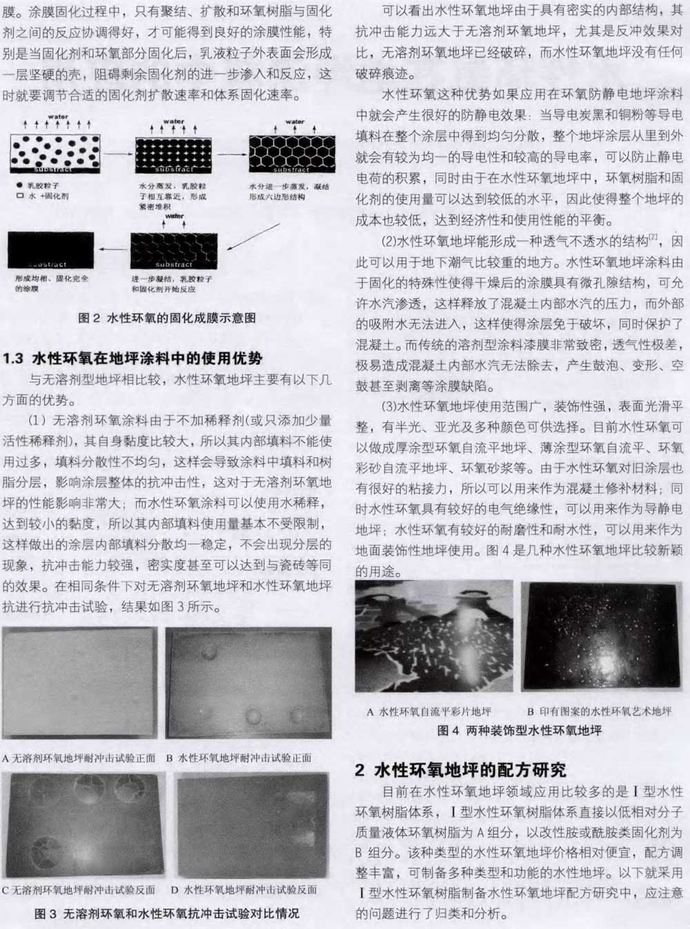 (2)基于水性環(huán)氧地坪的配方研究,介紹了水性環(huán)氧地坪各組分材料的選擇和使用對性能的影響。