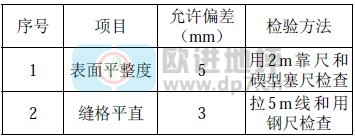 8.3.3 混凝土耐磨地面面層的允許偏差和檢驗(yàn)方法應(yīng)符合下表: