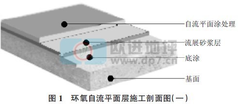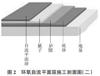 環(huán)氧自流平面層施工剖面圖見圖1,圖2。
