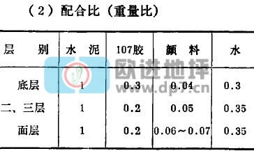 (1)原材料:甲、水泥,425號(hào)以上普通水泥較好;乙、107膠;丙、顏料,常用有氧化鐵紅、氧化鐵黃、氧化鐵綠等,丁、普通飲水。