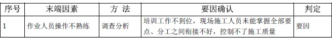 經(jīng)過(guò)對(duì)各種因素的調(diào)查分析,確定5 條要因,討論結(jié)果如下: