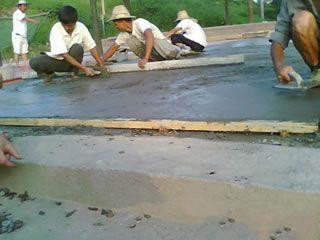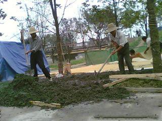 | | 藝術(shù)地坪施工2. 攤鋪標(biāo)準(zhǔn)砼.推薦配合比為:32.5水泥424KG,粗沙400KG,細(xì)沙400KG,石子(瓜子片)1100KG,水185-195KG; |