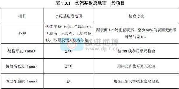 水泥基耐磨地面一般項目的驗收應符合表 7.3.1 的規(guī)定。
