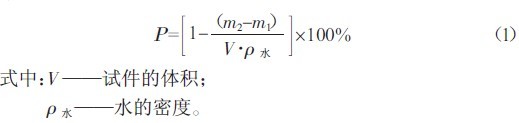 將試件在水中浸泡24 h 后,在水中測試試件的質(zhì)量m1,然后將試件風(fēng)干24 h,測其質(zhì)量m2,根據(jù)式(1)計(jì)算混凝土的孔隙率Ρ。