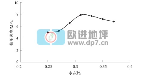 圖1 水灰比對(duì)抗壓強(qiáng)度的影響曲線