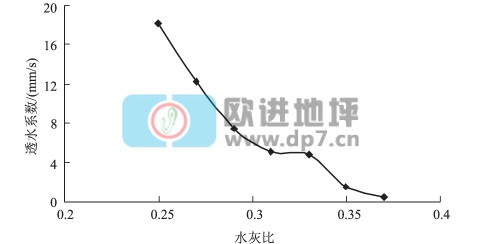 圖3 水灰比對(duì)透水系數(shù)的影響曲線
