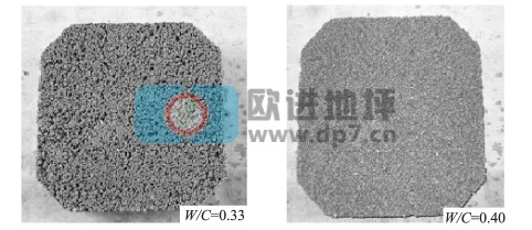 Table 2 The influence of different water-cement ratio to compression strength and permeable coefficient