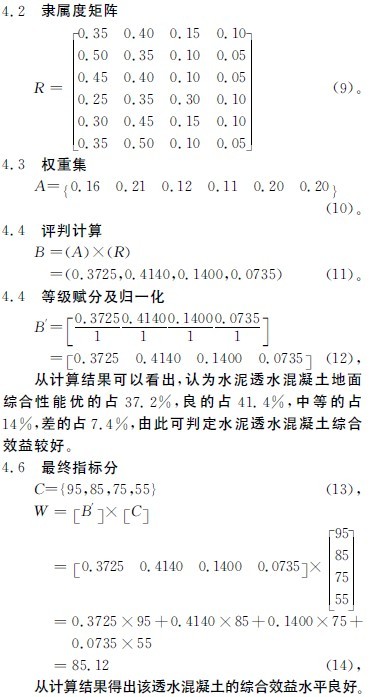 4 透水混凝土地面鋪裝綜合效益模糊綜合評(píng)價(jià)分析