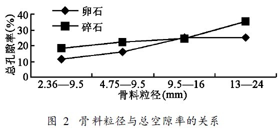 水泥: 陜西省漢中市漢江建材有限公司生產(chǎn)的32. 5級普通硅酸鹽水泥; 骨料: 陜西省漢中市天臺山碎石、漢江卵石, 骨粒徑2. 36~ 9. 5mm、4. 75~ 9. 5 mm、9. 5~ 16 mm、13~ 24 mm 4種; 拌和及養(yǎng)護(hù)用水: 飲用水。